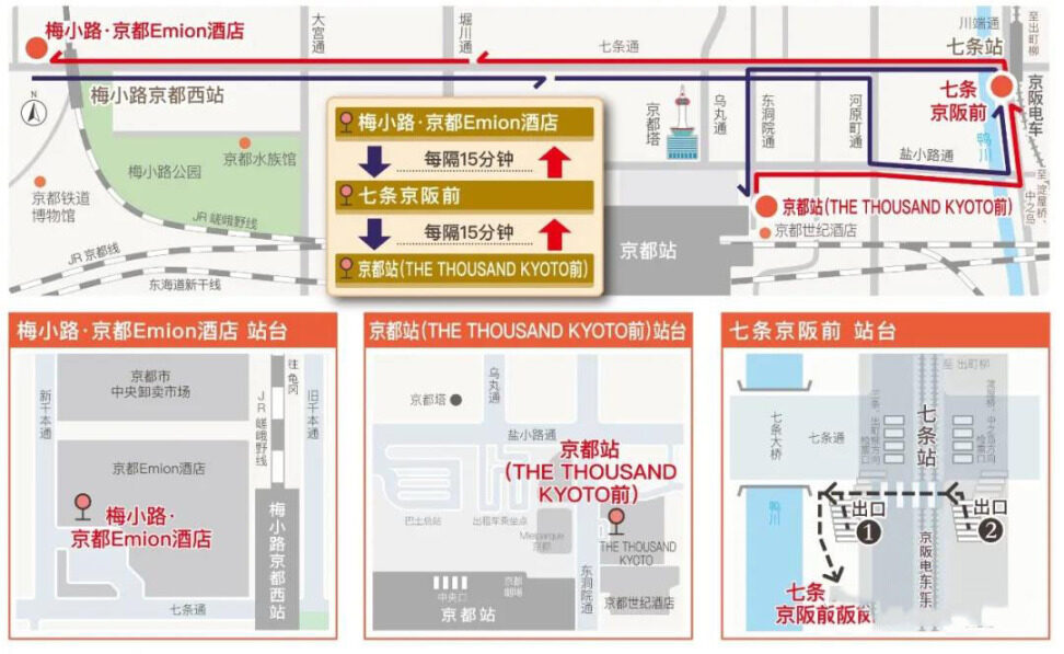 京都著名观光公交环线(京都站-七条京阪前-梅小路•京都Emion酒店)
