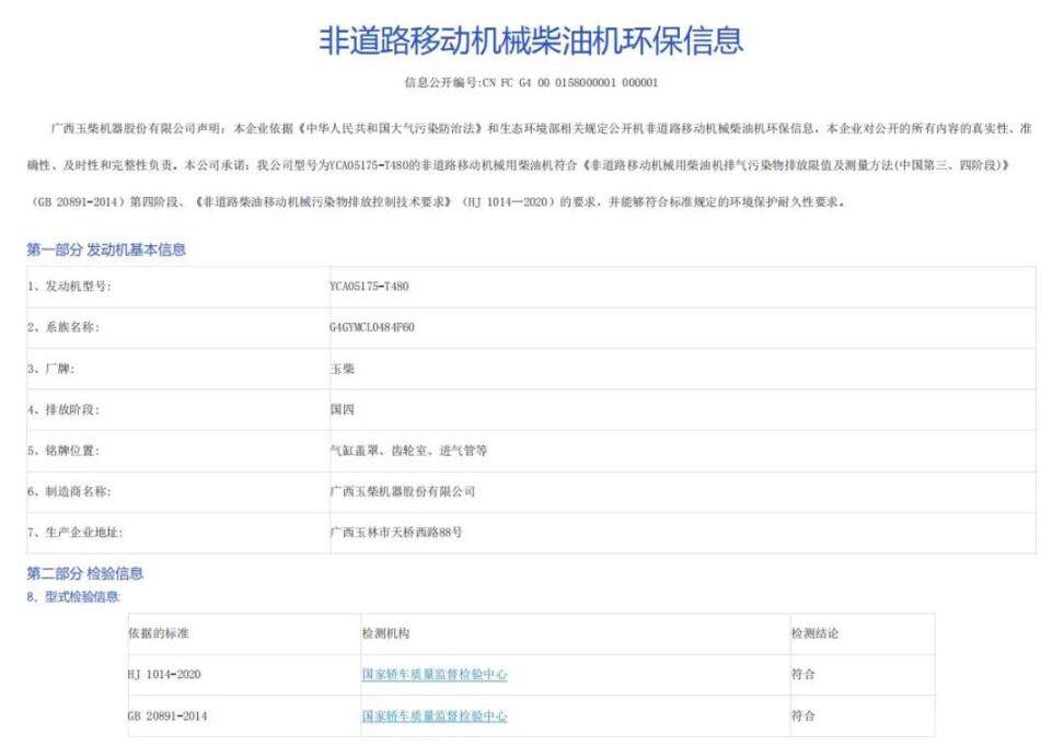 近日,玉柴非道路主力机型YCA05-T48、YCA05-T40、YCA08-T40分别在中国汽车技术研究中心、国家机动车质量监督检验中心(重庆)完成非道路国四排放型式核准认证,标志着玉柴成为国内唯一一个同时通过非道路国四SCR和EGR双路线型式认证的发动机厂家,也是目前通过非道路国四认证机型最多的企业。