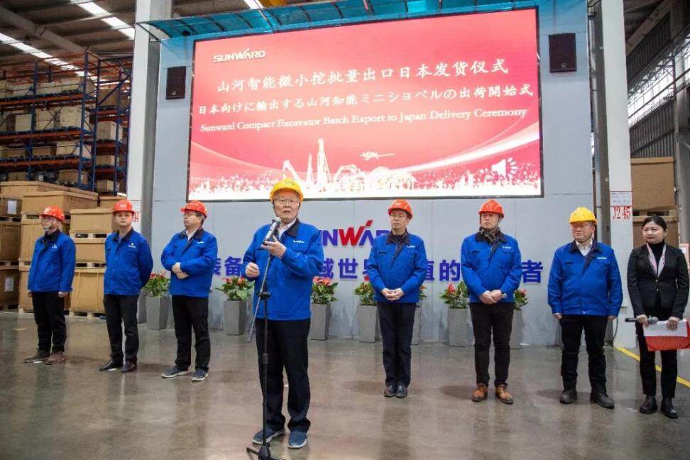 2021年3月3日上午,山河智能微小挖隆重发货日本,这标志着山河智能成为率先走进工程机械巨头日本市场的中国知名挖掘机品牌。山河智能董事长何清华,总经理付向东,副总经理龙居才及挖掘机事业部相关负责人出席发货仪式。