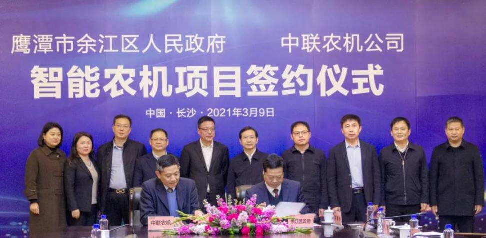为全面落实2021年中央一号文件精神,不断提升农机装备制造和农业机械化水平,近日,中联农机与江西省鹰潭市余江区政府在中联重科麓谷工业园签订智能农机制造基地建设项目。鹰潭市委书记黄喜忠,市委常委、副市长王亚青,市委秘书长褚小涛等领导以及中联重科副总裁、中联农机董事长、CEO熊焰明,中联农机副总裁高一平等出席项目签约仪式。