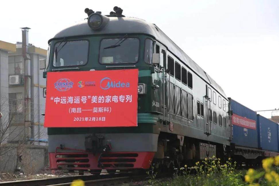 2021年2月18日,随着鸣笛声响起,满载50车电器的中欧班列专列由南昌向塘国际陆港横岗站驶出,预计15天后抵达俄罗斯莫斯科。这也是江西省开行中欧班列以来,首次为家电企业开行的出口专列,班列货价约148万美元。