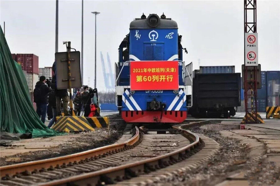 2021年2月24日,一列满载着汽车、家具等货物的中欧班列从天津新港发出。2021年天津地区发往满洲里、二连、阿拉山口三个口岸站出口的中欧班列已达到60列3240车,同比增长8.2%。