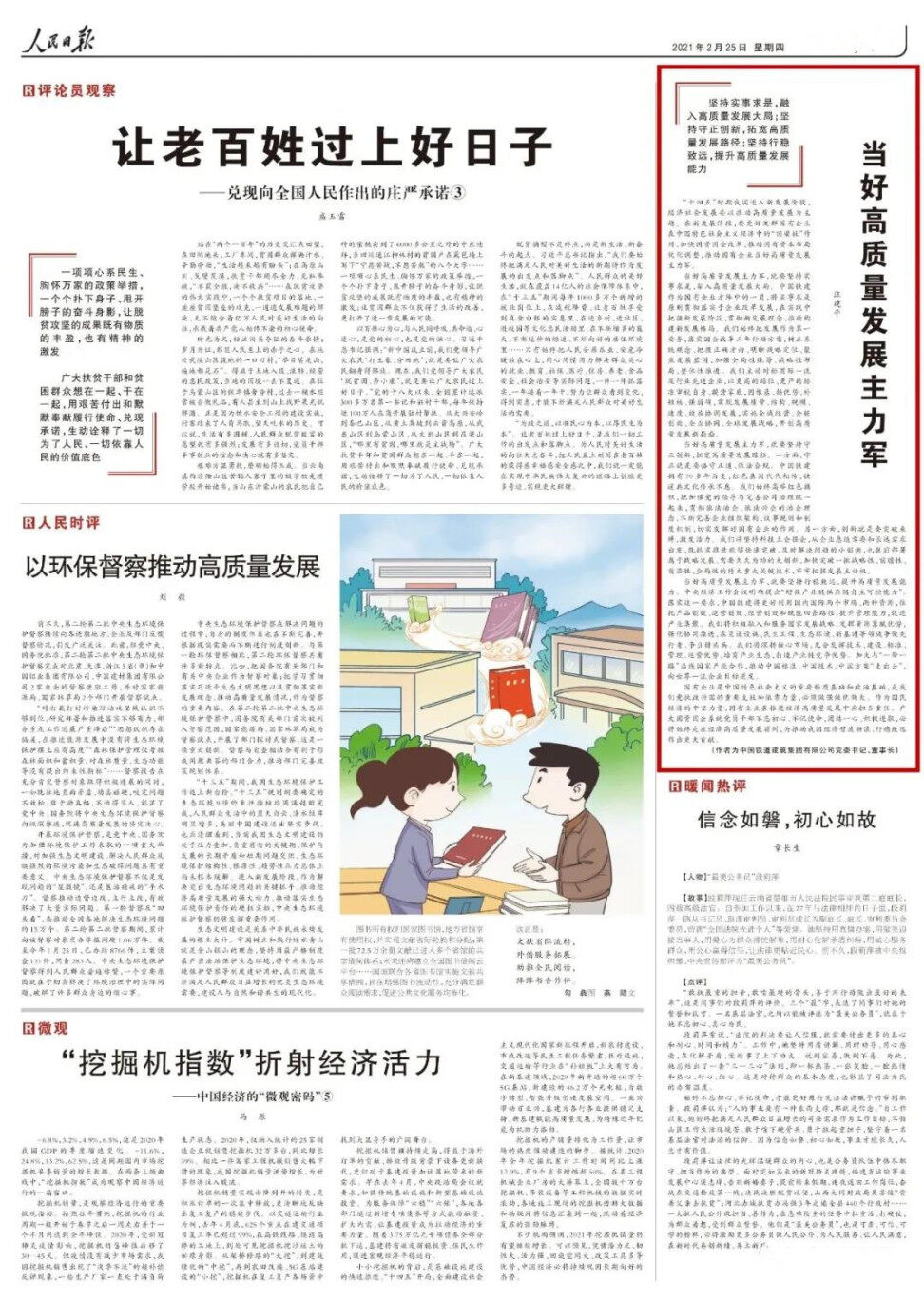 2021年02月25日,《人民日报》发表中国铁道建筑集团有限公司党委书记、董事长汪建平署名文章:当好高质量发展主力军。全文如下: