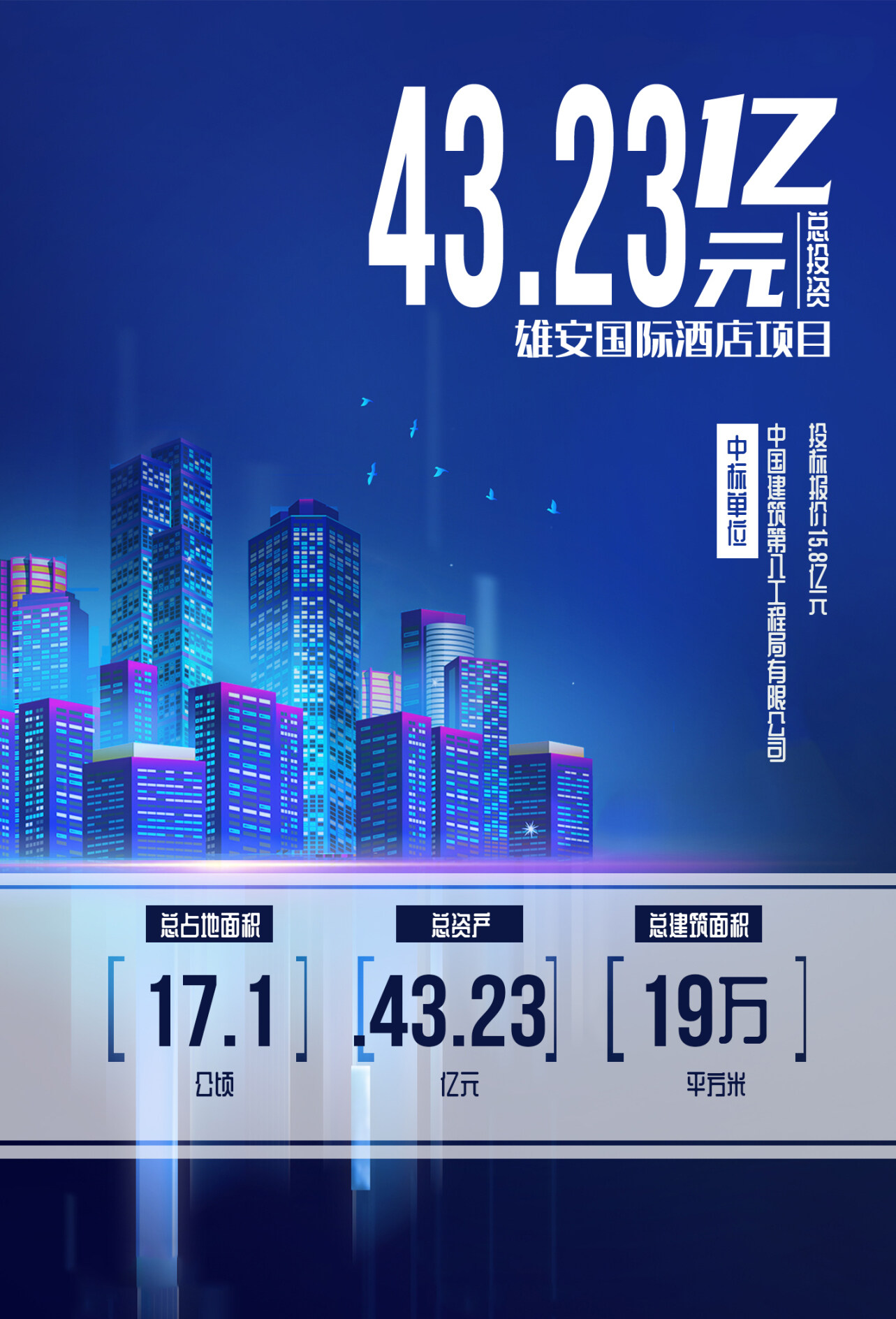 2021年3月8日,河北省招投标公共服务平台发布雄安国际酒店项目施工总承包中标候选人公告,中国建筑第八工程局有限公司以15.8亿元斩获该项目,项目计划工期846天。