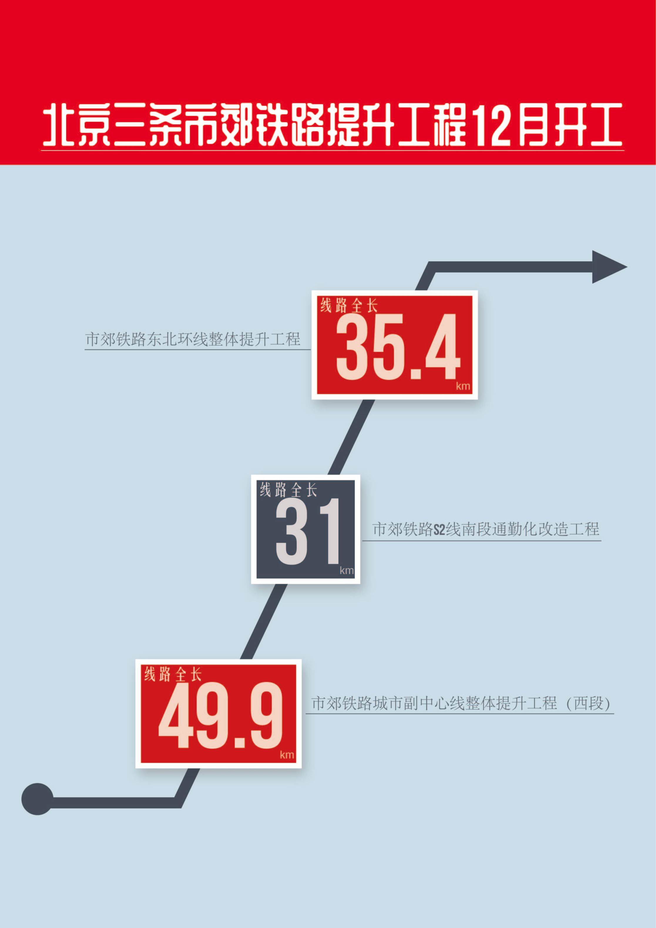 近日,根据京投公司公布的2021年重大投资项目情况,北京市郊铁路城市副中心线整体提升工程(西段)、市郊铁路东北环线整体提升工程、市郊铁路S2线南段通勤化改造工程均计划在2021年年底开工。