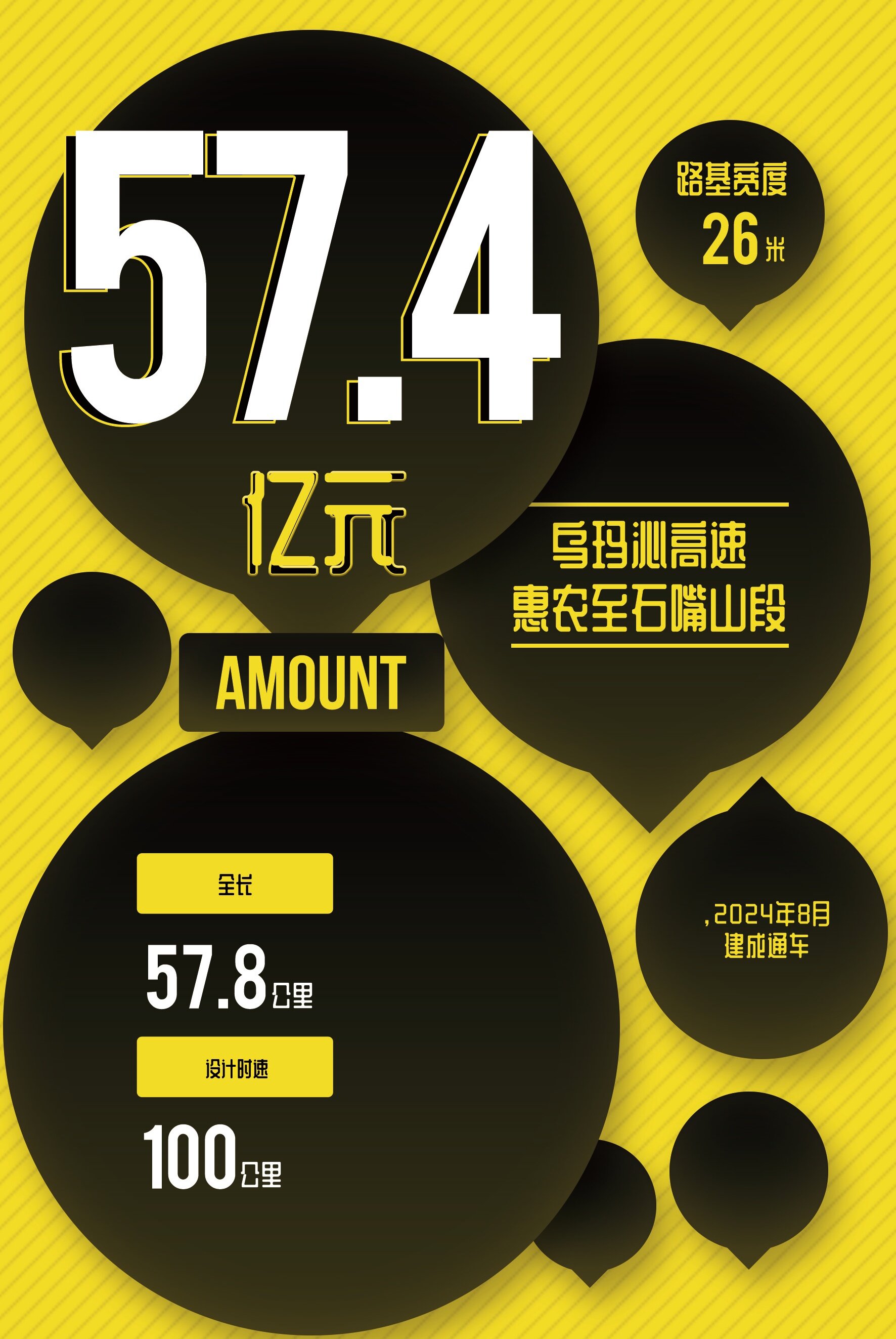 近日,宁夏交通投资集团有限公司、宁夏交通建设股份有限公司、中交公路规划设计院有限公司联合体中标乌玛沁高速惠农至石嘴山段项目,本项目投资估算总金额为57.36亿元,平均每公里造价9925万元。