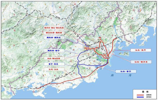 2021年7月17日,据国家发改委《国家发展改革委关于粤东地区城际铁路建设规划的批复》消息,在省委、省政府的高度重视与大力支持下,目前省铁投集团已启动粤东城际铁路“一环一射”前期工作。其中,连接汕潮揭三市中心城区的汕头至潮汕机场段、潮汕机场至潮州东段、潮汕机场至揭阳南段计划于2021年9月启动建设。