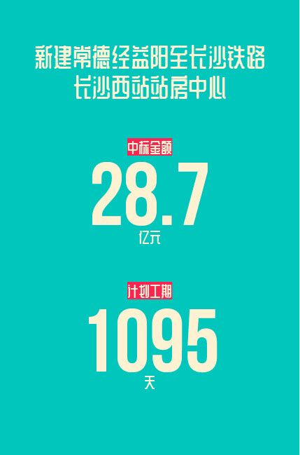 2021年7月29日,广州市公共资源交易中心发布新建常德经益阳至长沙铁路长沙西站站房及相关工程施工总价承包中标候选人公示,中铁建工集团有限公司以28.7亿中标,计划工期1095日历天。