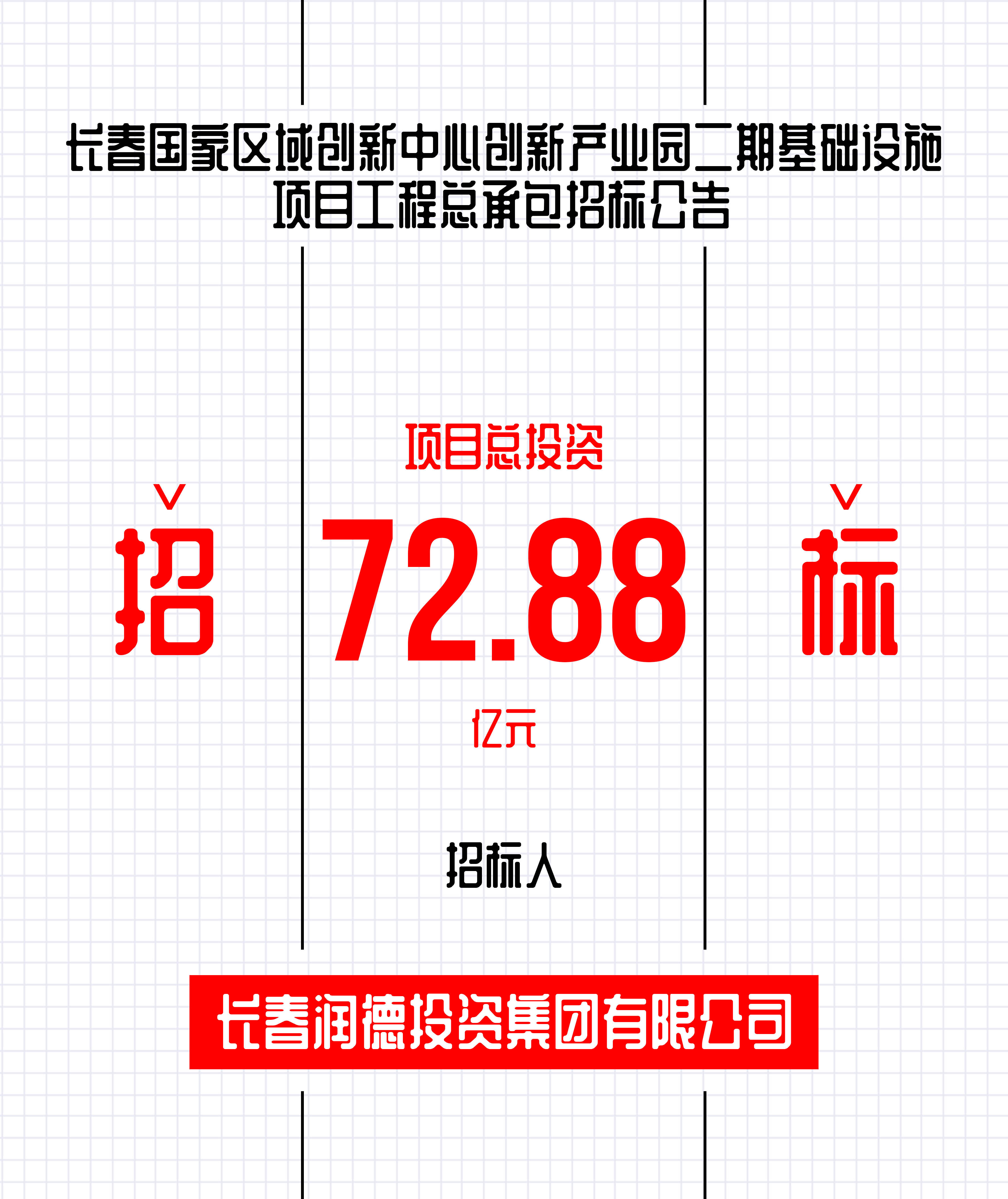2021年7月30日,长春市公共资源交易中心发布长春国家区域创新中心创新产业园二期基础设施项目工程总承包招标公告,招标人长春润德投资集团有限公司,项目总投资72.88亿元。