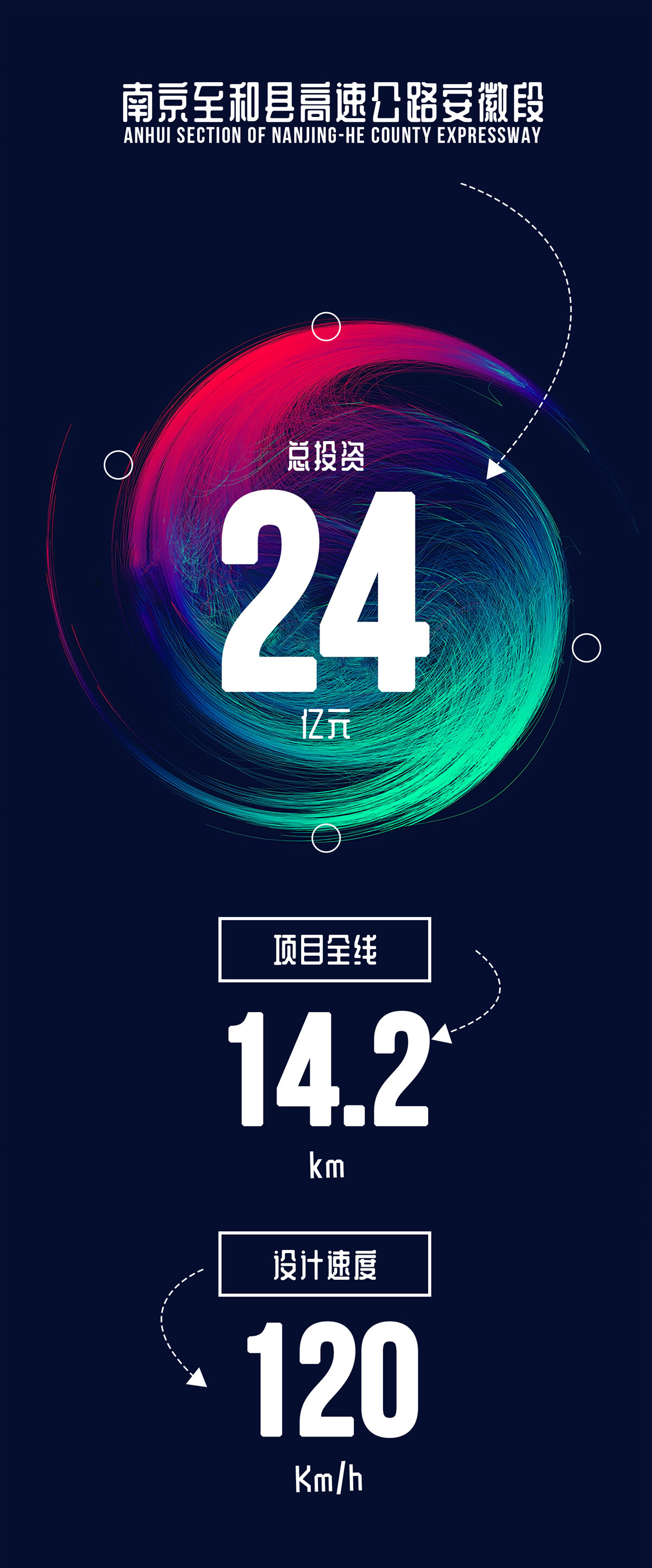 主要控制点是驷马河(起点)、乌江、石跋河、青龙湖、香泉、S22 天天高速滁马段(终点)。本项目全线14.184公里,均在和县范围内。公路等级为全立交、全封闭高速公路;设计速度120Km/h。双向六车道、整体式路基宽度34.5 米;汽车荷载等级公路-Ⅰ级;设计洪水频率为路基,大、中、小桥及涵洞为1/100。项目投资估算为人民币239570.6895万元。